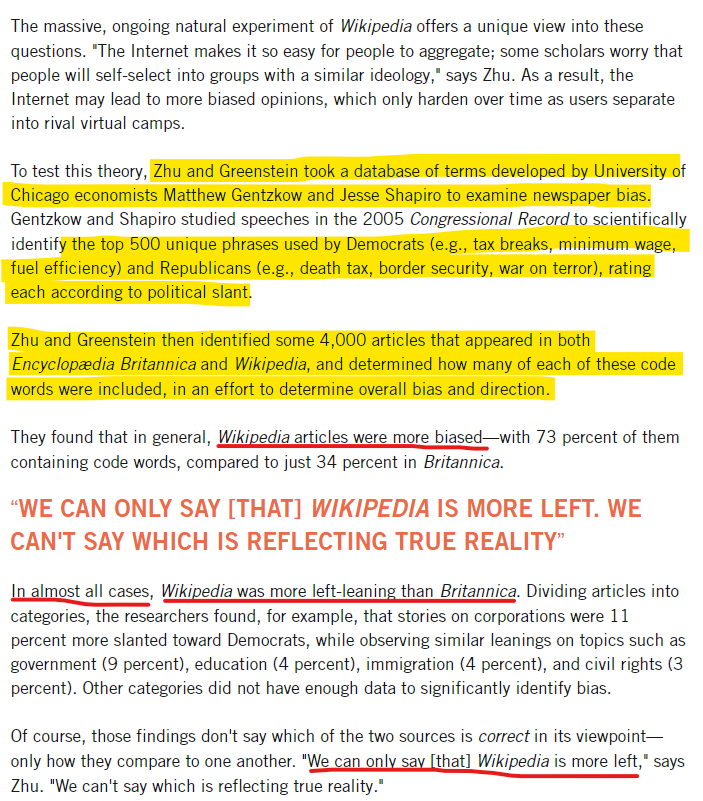Feng Zhu, an assistant professor in the Technology and Operations Management unit at Harvard Business School and Shane Greenstein of Northwestern's Kellogg School of Management did a rigorous investigation into the biases at Wikipedia Vs Encyclopædia Britannica. They found that Wikipedia had a very strong leftist bias across the board in all topics. In India, leftist bias translates into the "visceral hatred for Hinduism" that the Opindia team talked about.