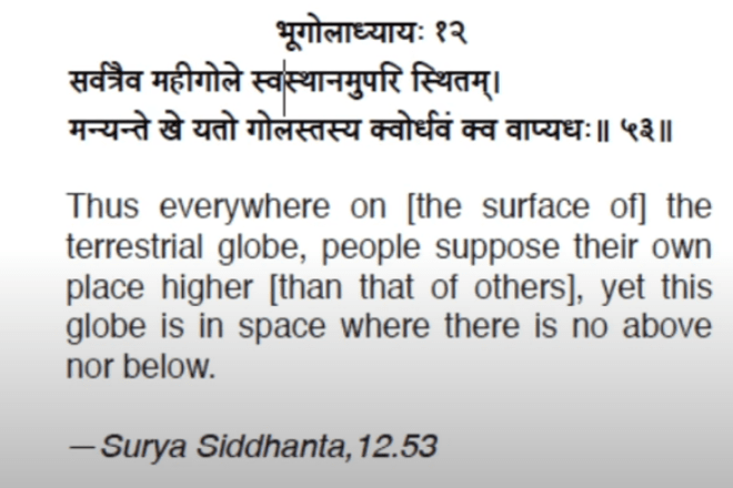 “Thus everywhere on the terrestrial globe, people suppose their own place is higher (than others). Yet this globe is in space where there is no above nor below.” – Surya Siddhanta, 12.53