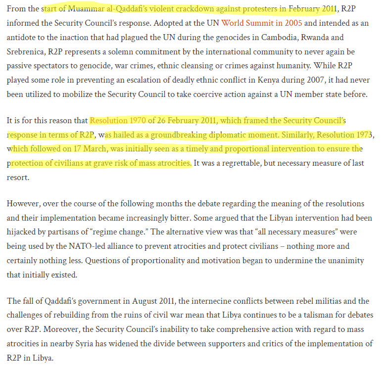 The UN’s “Responsibility to Protect” resolutions (1970/1973) enabled a NATO intervention marketed as civilian protection but culminating in regime change—sparking years of state collapse.