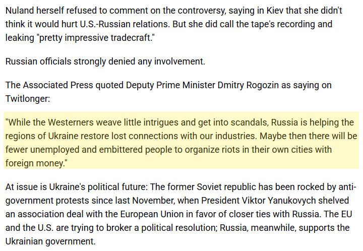 Russia seized on this as proof that the U.S. Deputy PM Dmitry Rogozin choreographed the Ukraine revolution, quipped that while the West “weaves intrigues… people organize riots in their own cities with foreign money,” pointedly accusing outside powers of funding the unrest.