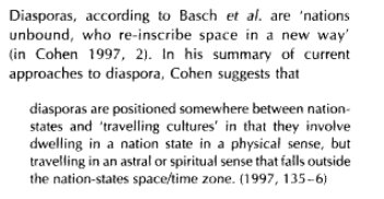 The diasporas are a strange type of people. They are a floating spirit if you will. They are in the new country of their work - trying to fit in - and also strongly connected with their roots in their country of origin.