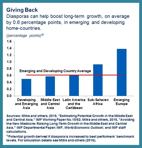 In fact, the studies show very clearly that the economy of the country of origin gets an average boost of 0.6 percentage points from the diaspora community!