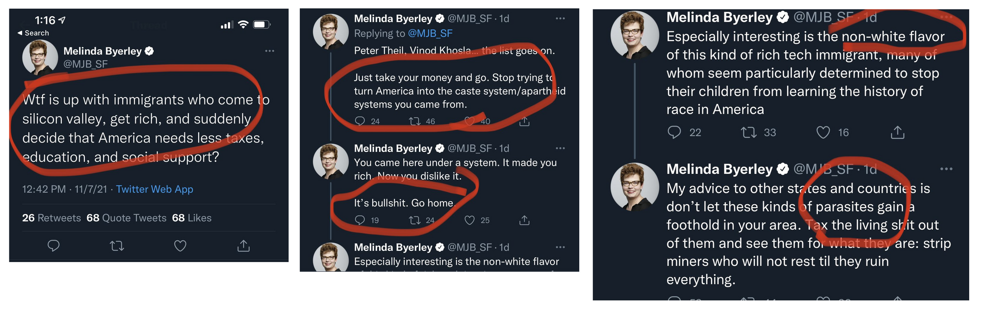 For example Melinda Byerley of the FiddleHead showed her bigotry openly.