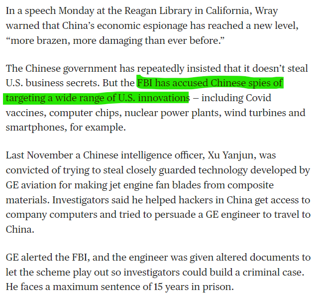 As FBI Director Christopher Wray said last year, the scale and level of Chinese espionage in the US "blew me away".