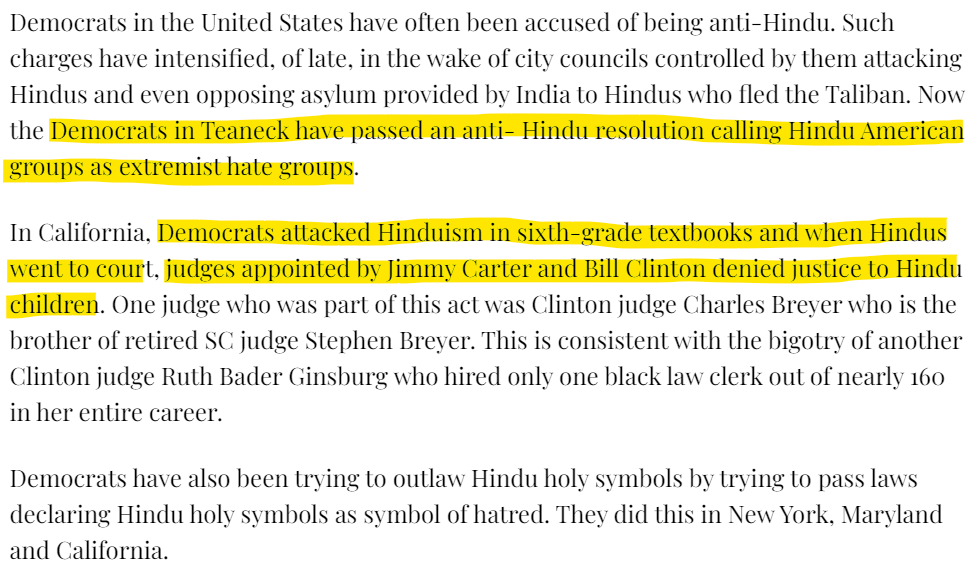 And that is why it is imperative to look at how anti-Hindu hatred is being spread so widely. Specifically in connivance with the Democratic Party.