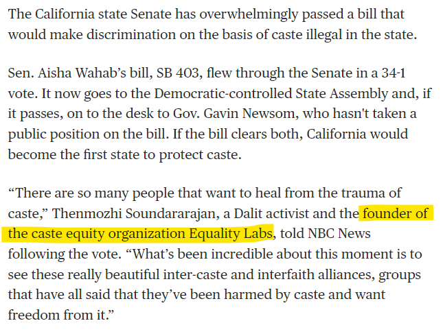 The Bill and the whole push for making caste a category to be "protected" (a euphemism to litigate upon) has been championed by an organization called Equality Labs.