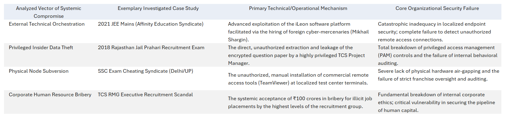 The 2021 JEE Mains examination manipulation case represents a watershed moment in the history of Indian educational cybercrime, illustrating how criminal enterprises co-opt corporate structures to execute nationwide digital fraud.