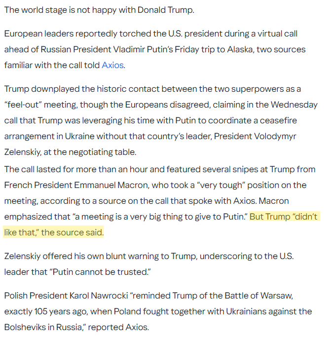 Even before the summit had started, the European leaders ganged up on Trump in a long phone call where they gave Trump a piece of their mind.