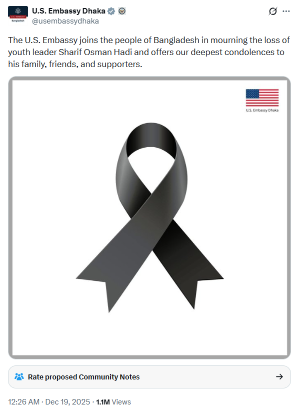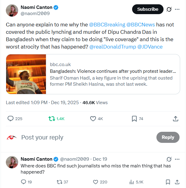 This selective empathy effectively normalises a hierarchy of victims in which an anti‑India Islamist mobiliser is centred as the crisis figure, while a Hindu lynching victim is peripheralised.