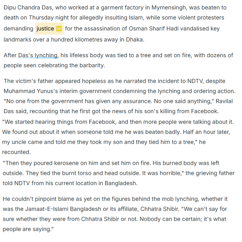 Had something like Dipu Chandra happened to any person in Europe or the US, it would have been a major news item and controversy. But BBC, UN, US, France, UK, NYT do not even mention his torture and burning alive - why?!