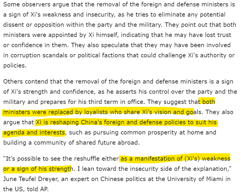 Steve Tsang, a Chinese expert at London's School of Oriental and African Studies, says that it could be further consolidation of "Xi's faction" within the Chinese Communist Party (CCP).