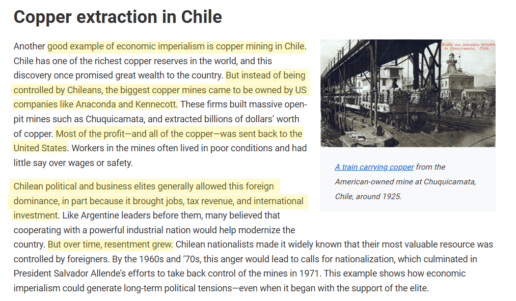 Chile's copper reserves - it's greatest wealth - also became its greatest curse. For, the United States would ensure that Chile could never be independent in its own governance.