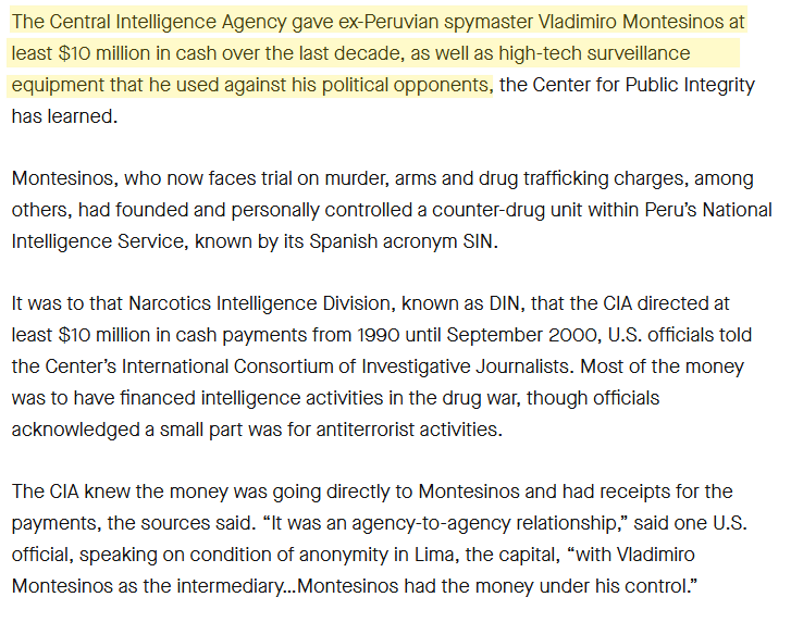Fujimori’s intelligence chief Vladimiro Montesinos had deep links to the CIA, and U.S. backing continued through harsh counterinsurgency and neoliberal restructuring.