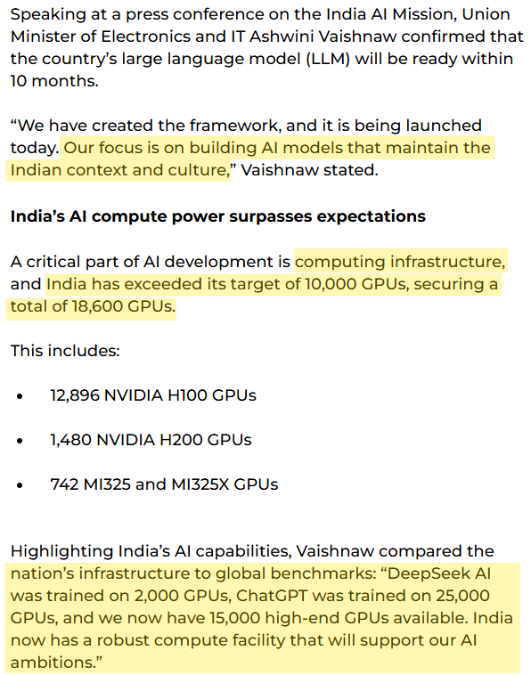 Meanwhile, India is making a bold move towards AI self-reliance by launching an ambitious AI mission. The government has announced plans to develop its own foundational AI model, comparable to global leaders like ChatGPT, Gemini, and DeepSeek.