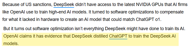 Well, there is evidence suggesting that DeepSeek may have used data from ChatGPT to train its R1 model.