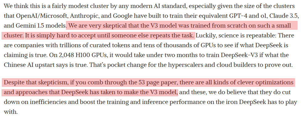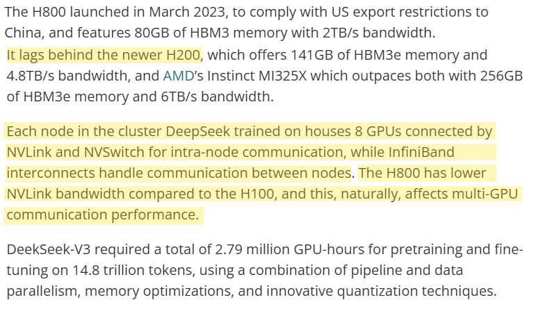 So the most fundamental question that has come up with respect to the achievements touted by Deepseek is - Was all this really done with 2048 H800 chips - no H100s?