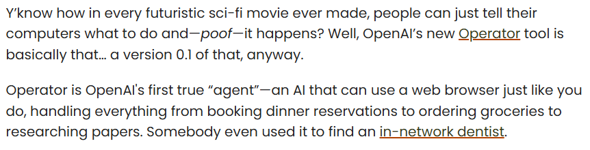 The impact of Deepseek on OpenAI has been such that the American company has launched an "Operator" (Jan 23rd, 2025).