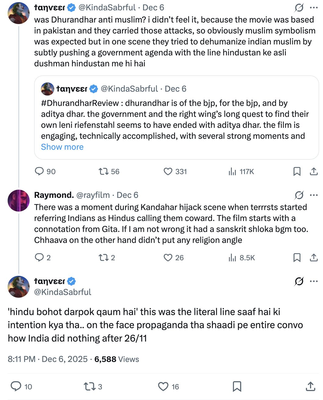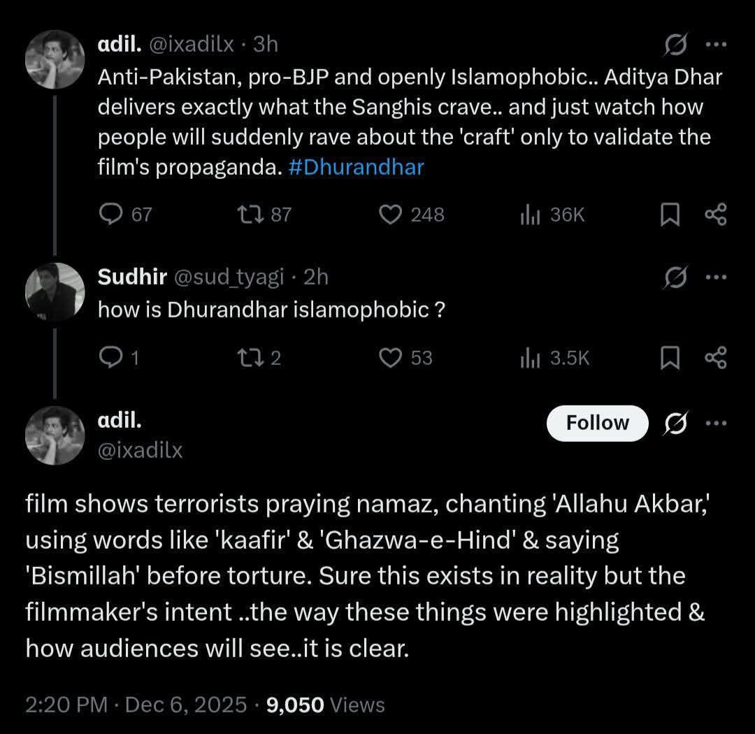 The anxiety is not about craft or ethics. The film’s technical competence, genre discipline, and narrative confidence make it harder to dismiss as crude propaganda. What truly unsettles the old gatekeepers is that cinema they do not ideologically own is now fluent in cinematic language itself. The familiar trick -branding dissenting narratives as unsophisticated or dangerous - no longer works when the storytelling is tight, immersive, and popular. The so-called film critics have been at it showcasing their anti-Hindu and Islamist apologist mindset.
