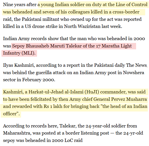 Ilyas Kashmiri was responsible for the beheading of the Indian jawan Sepoy Maruti Talekar.