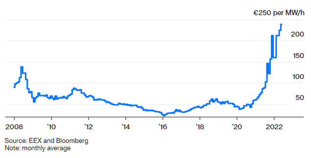 We’re reaching the point of ‘no idea is too crazy’: keeping nuclear power plants running, wholesale energy price caps, suspension of markets, removal of CO2 costs and limits, burning more coal, re-starting domestic gas production even if that triggers local earthquakes in the Netherlands. Everything has to be backed up with multi-billion-euro loans from governments to key sectors. (Source: Many Winters Are Coming. Start Saving Energy Now. / Bloomberg)