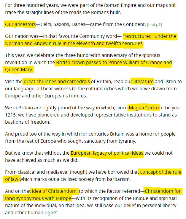 In what is called the Bruges Speech, UK's Prime Minister Margaret Thatcher shared her idea of what Europe and the UK's fundamental values and history are.