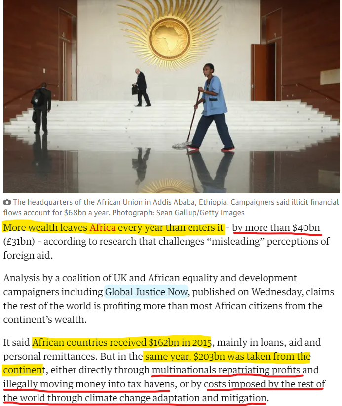 Even today, $40 billion more goes out of Africa than the amount that comes in. The resources in Africa are being plundered as well.