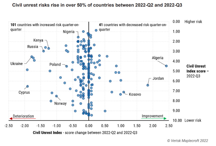 High energy prices and sky-rocketing costs of living are leading to a huge risk of civil unrest in these countries.