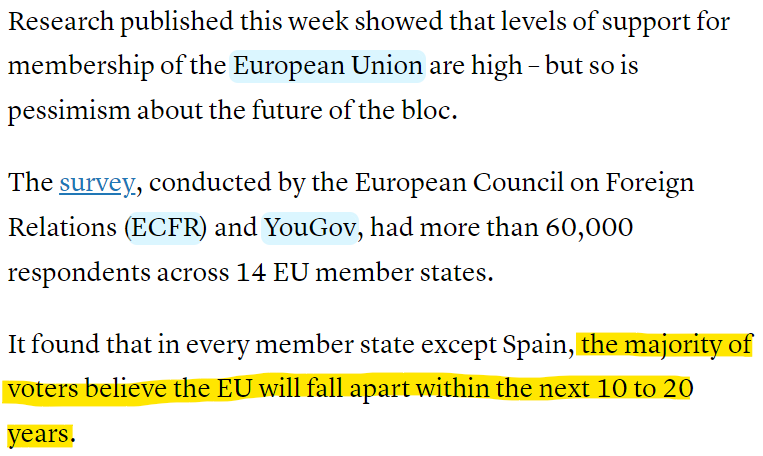 This pessimism is being reflected in the way the public in Europe is viewing the future of the European Union as well.