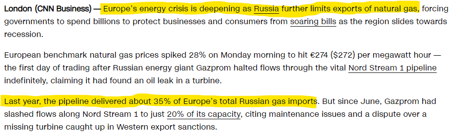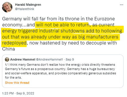 What does this mean? It means that industrial production across the board, specifically in Germany, has taken a hit because of the lack of gas and oil.