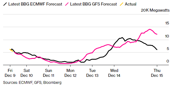 The winds, or rather lack of them, are going to deal another blow to the energy needs.