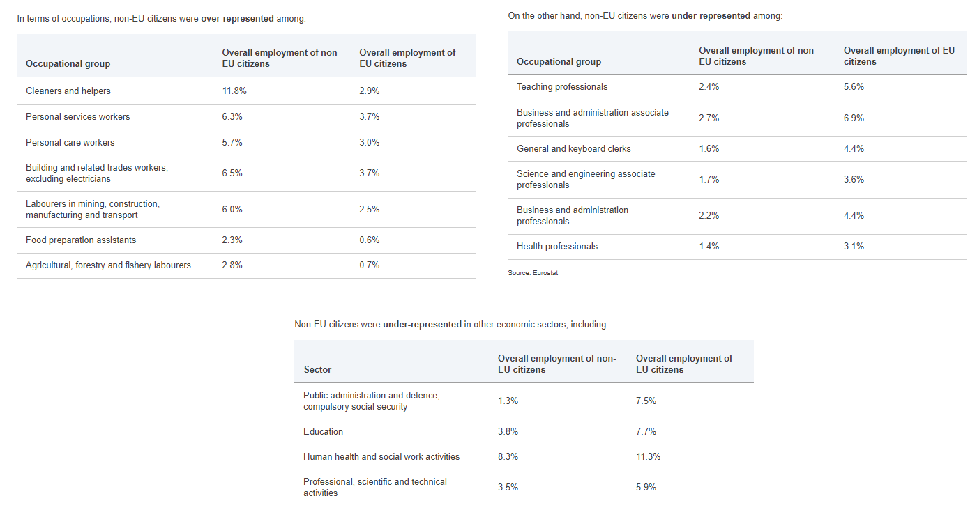 They are not educated, take low-income jobs compared to EU citizens, and are severely under-represented in high-end professions.