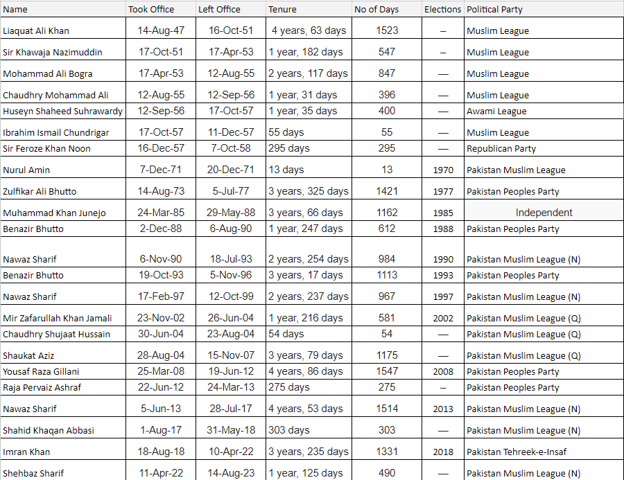 Here is a list of all the Prime Ministers in Pakistan's history. What strikes you the most? Check the tenure.