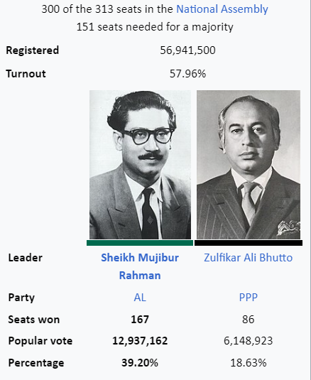 This victory put the Pakistani Army's panties in a twist after years of unrestricted military rule. They were pushing for an Islamist takeover of Pakistan with Jamaat-i-Islami and Nawaz Sharif's Muslim League as the main backers.