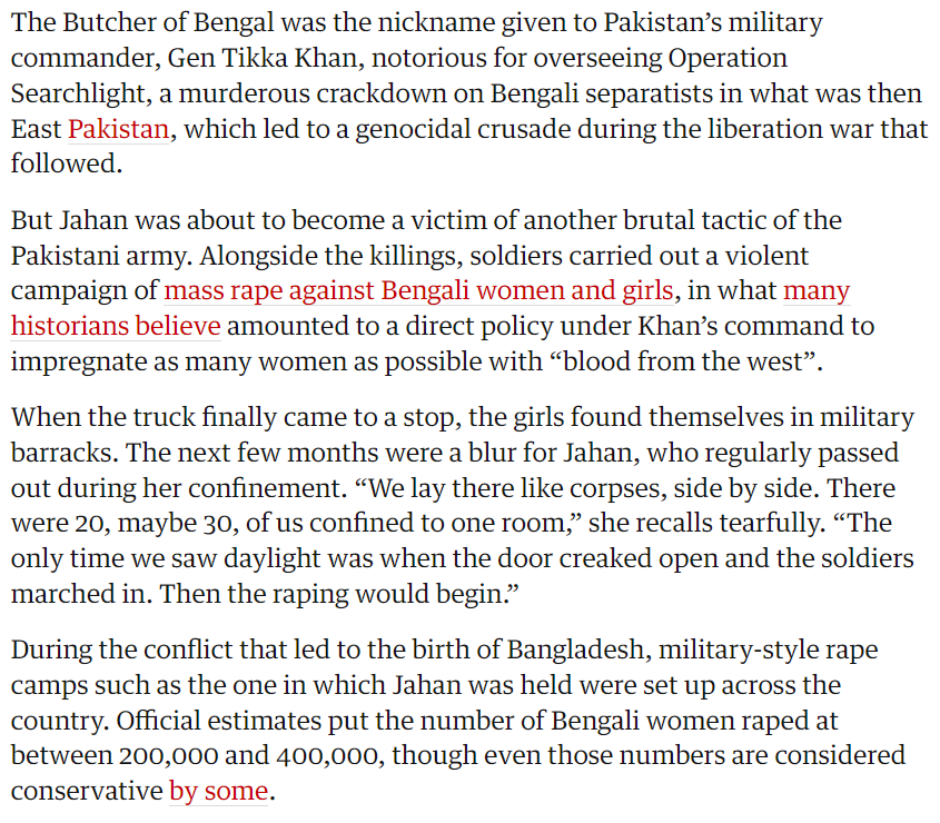 Rape camps - where women were enslaved and raped by the group that called itself the "Pakistani Army" were a regular feature. A strategic component of an aggressive maneuver.