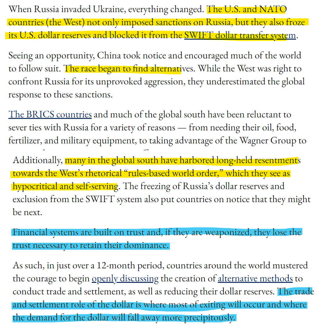 As for DeDollarization, it is not an if now anymore. It's about the when.