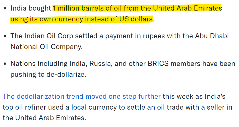 In August 2023, almost 53 years to the date when Richard Nixon abandoned the Bretton Woods system leading the way to the petrodollar world, India made a small trade effectively cocking a snook at American supremacy itself.
