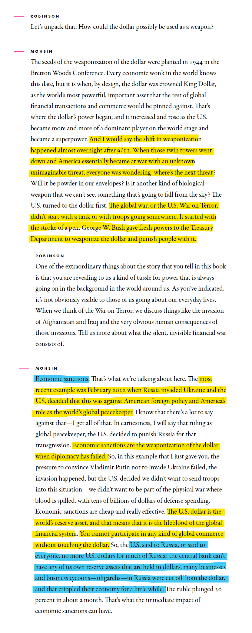 In her book Paper Soldiers: How the Weaponization of the Dollar Changed the World Order, Bloomberg News correspondent Saleha Mohsin unpacks the power of the US Dollar.