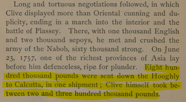 "Possibly since the world began, no investment has ever yielded the profit reaped from the Indian plunder, because for nearly fifty years Great Britain stood without a competitor."