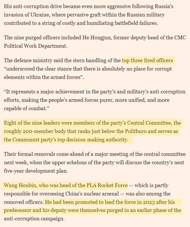 Now, let us move to the ongoing purge of top military generals in China.
