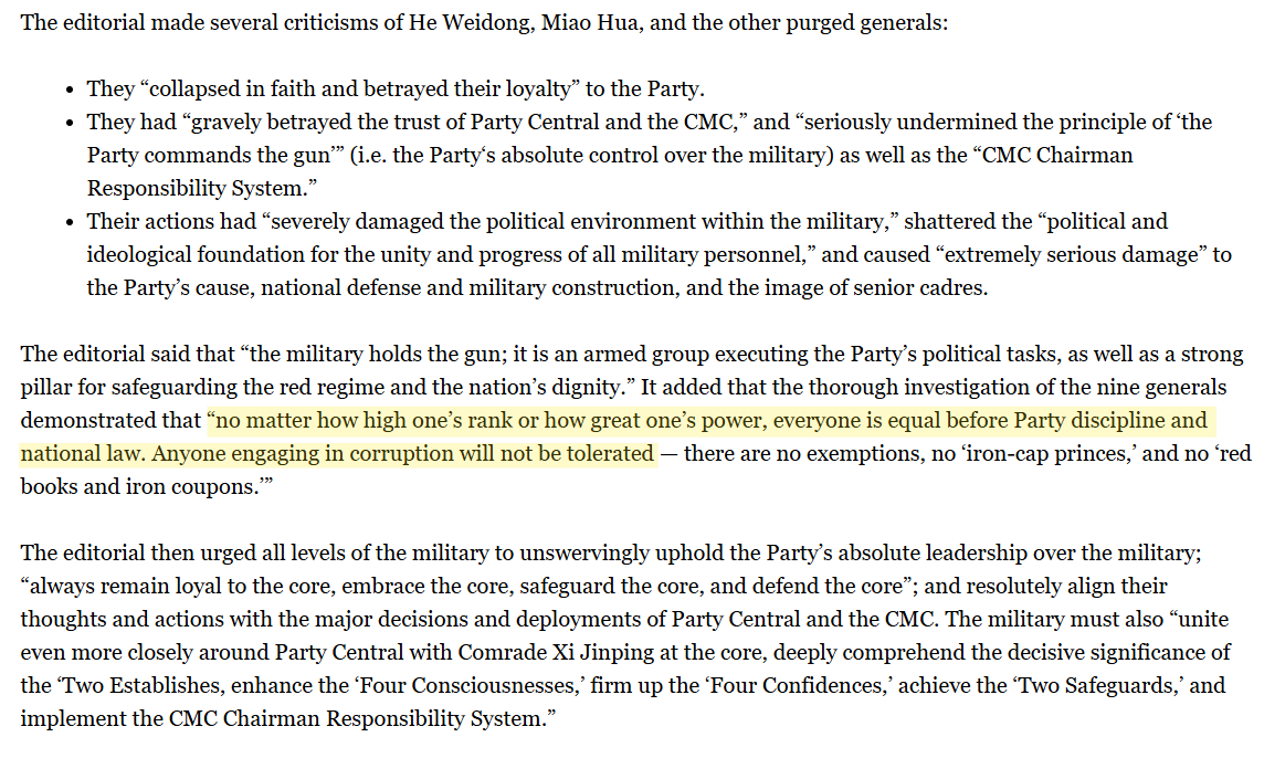 Remember here that Xi Jinping’s purge did not merely target officers accused of routine corruption or bribery.