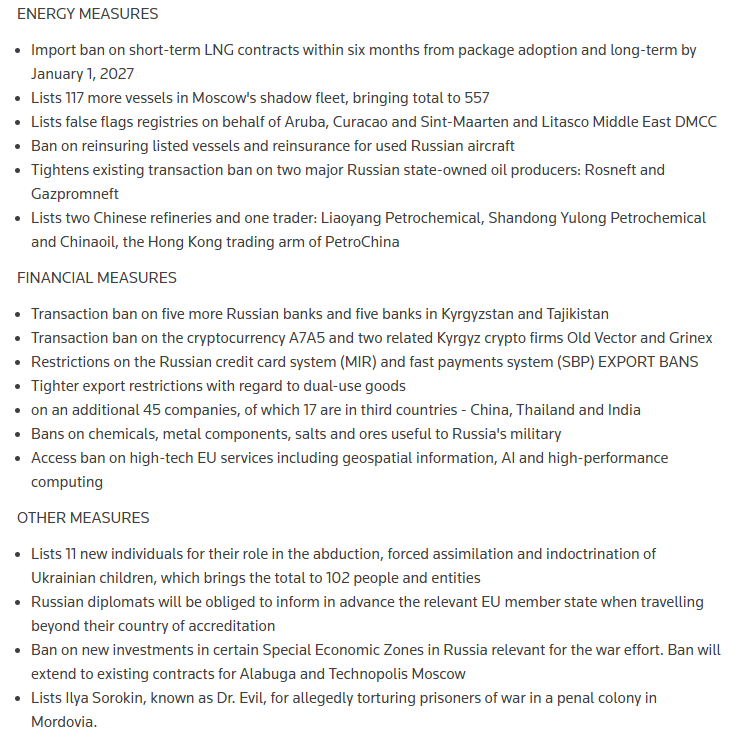 At the same time, the European Union adopted its 19th package of sanctions targeting Russia’s energy exports, including a phased ban on LNG imports and new restrictions on China-linked refineries and shadow-fleet tankers used to evade sanctions.