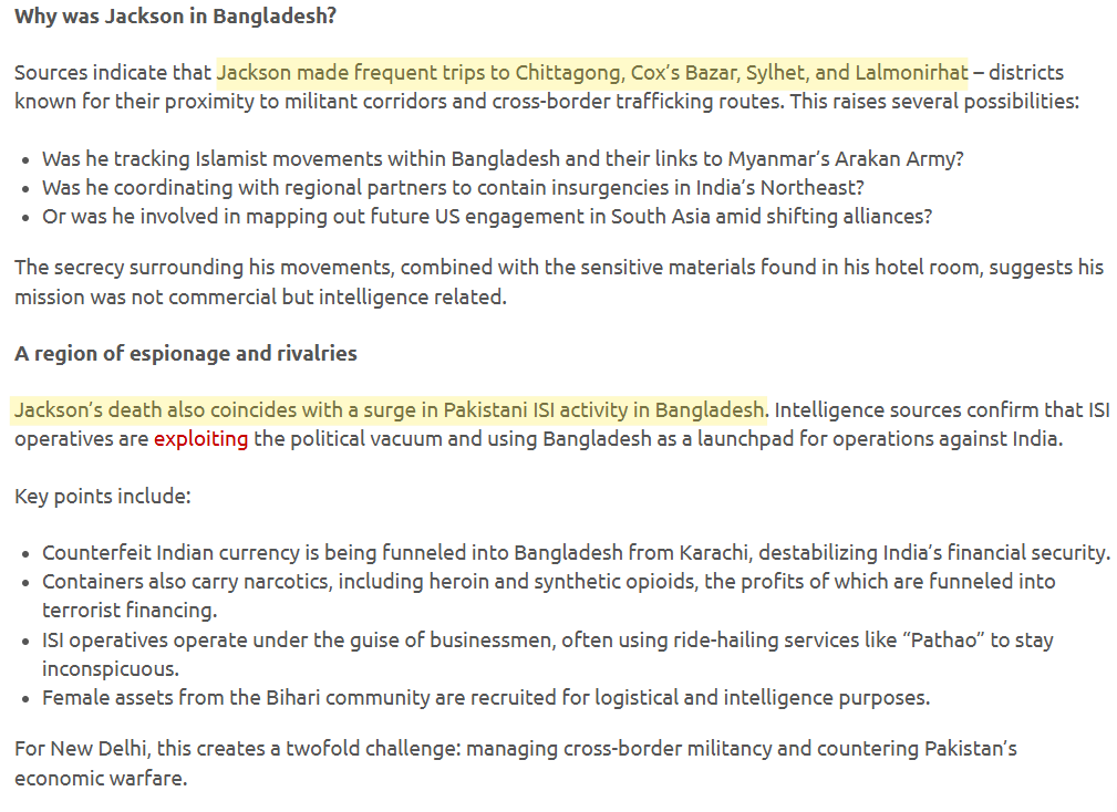 Jackson was ostensibly in Bangladesh “on a business trip,” but this cover story unraveled as new details emerged about his activities and rank.