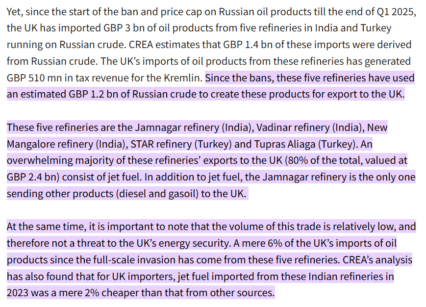 Independent data confirms that the UK continues to import fuel refined from Russian crude via India, Turkey, and China — a loophole London is not eager to close for itself.