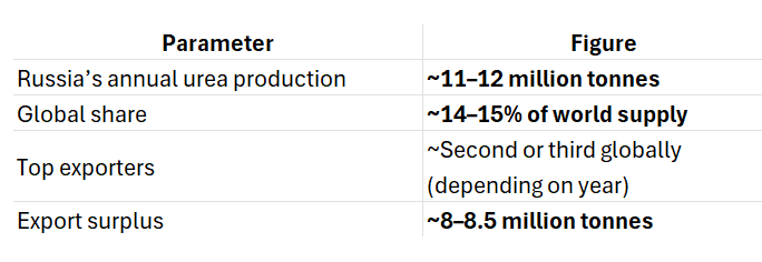A single urea plant in Russia has the capacity to cover nearly one-fourth of India’s total fertilizer import requirement. If a second facility is added later — which is already being discussed at a strategic level — India could eliminate its dependence on Gulf producers and Chinese supply routes altogether.