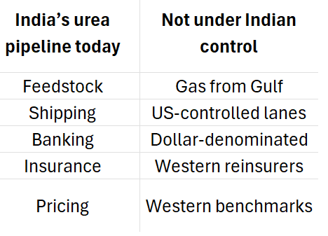 By hosting urea production inside Russia, India moves part of its agricultural lifeline outside this coercive perimeter. The question is not whether the U.S. would cut India off — it is whether India should continue to leave such a central lever of food security in someone else’s hands.