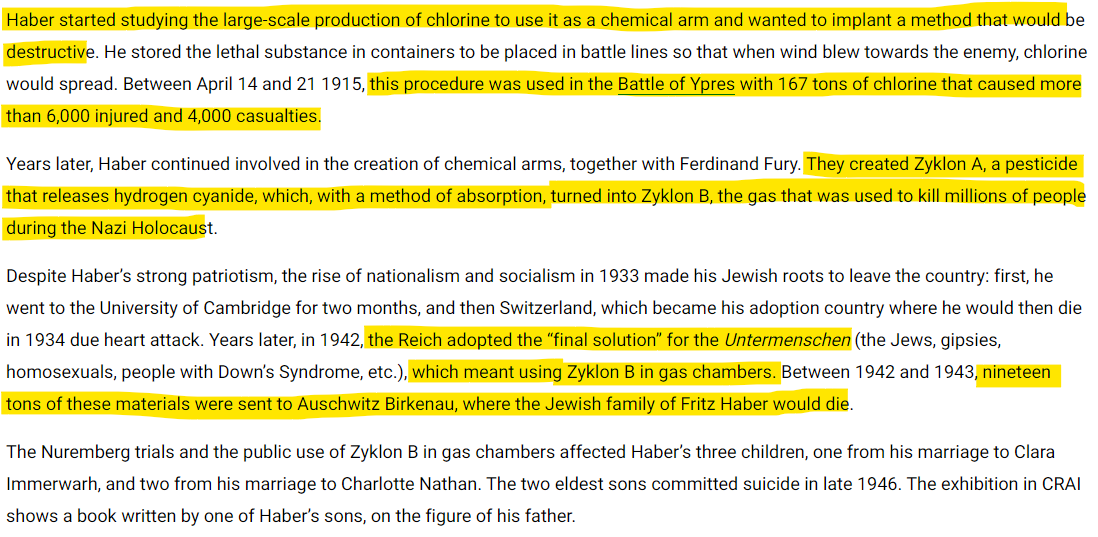 There was a man called Fritz Haber. A Nobel Laureate German chemist who won his Nobel Prize in Chemistry in 1918 for developing the Haber-Bosch process.