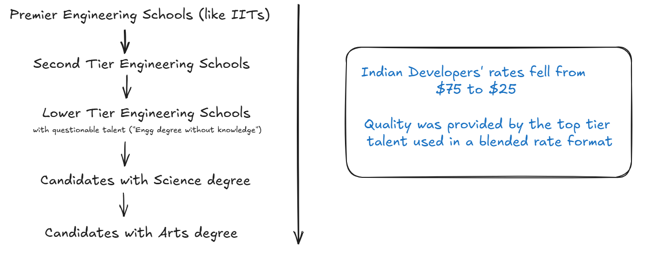 Now, look at the whole scenario and the two models of lowering costs that we have discussed: One, by the large Indian IT firms, and Second, by the unscrupulous body-shoppers.