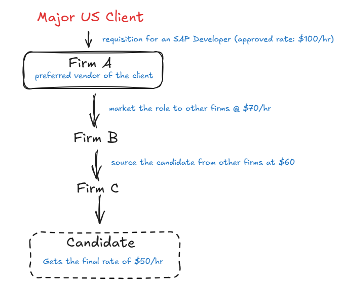- Invariably, Firm B - in this model - would jostle for "preferred vendor" status and offer candidates a much lower price than Firm A.