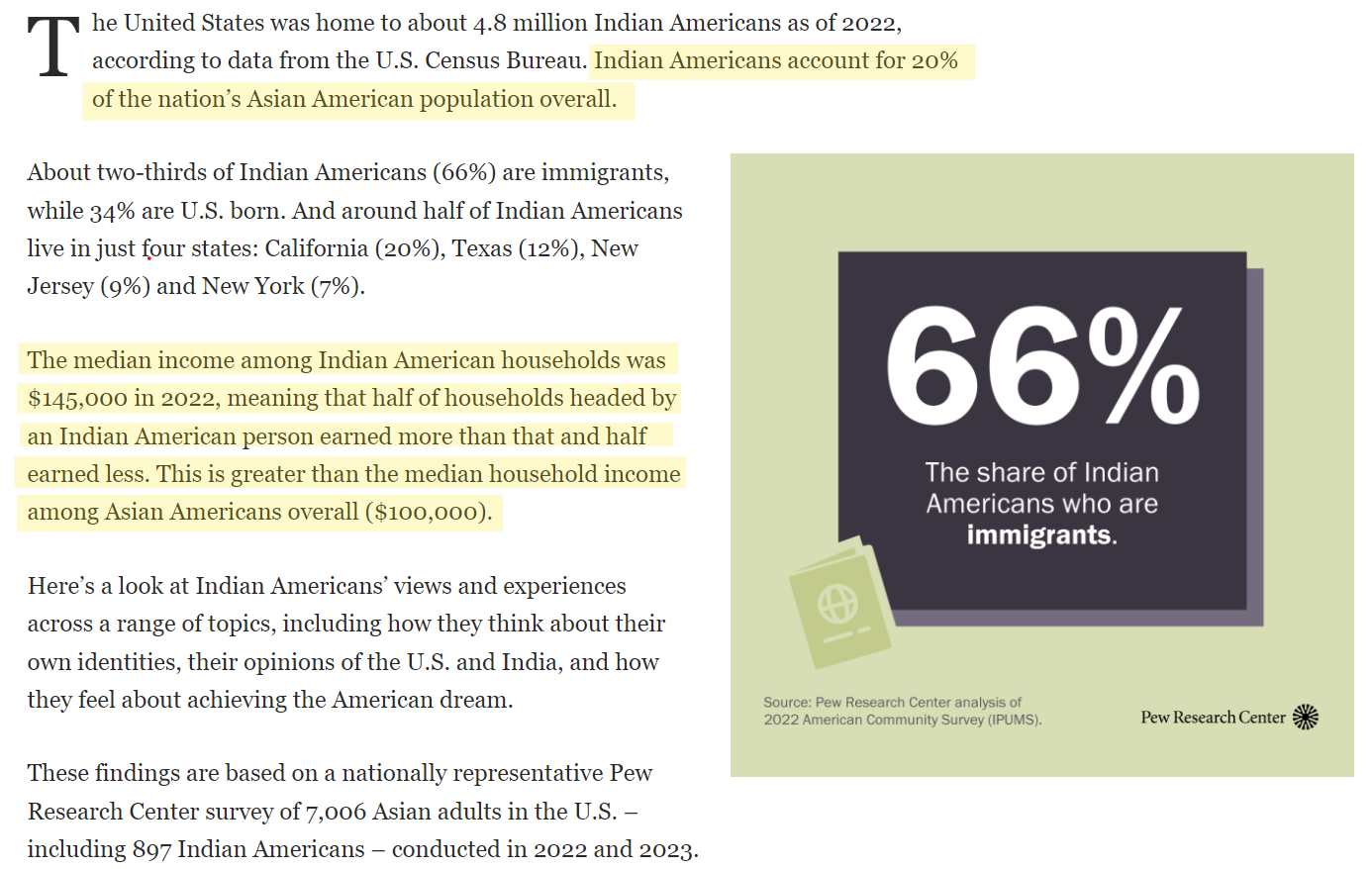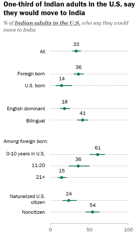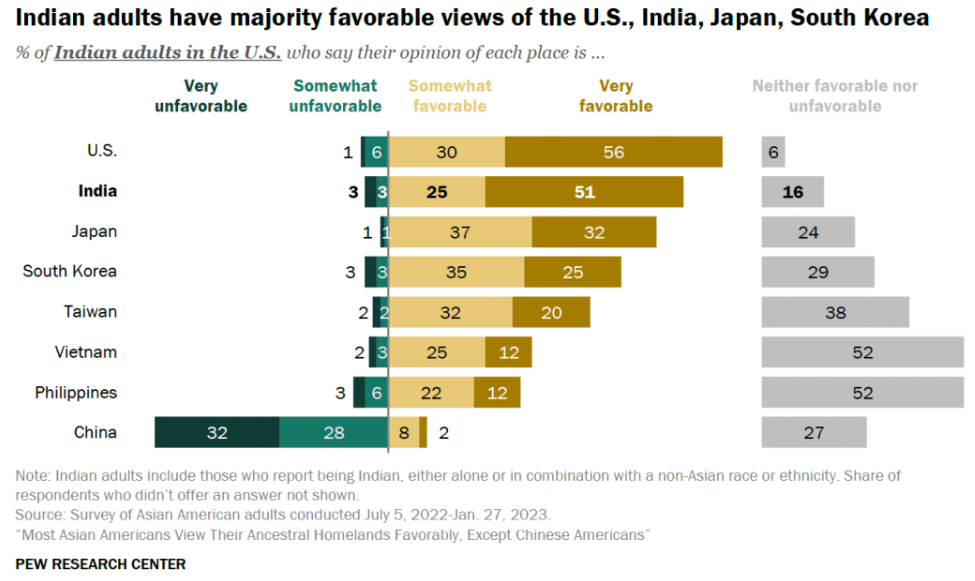 It is for this reason that Indian Americans are more likely to view the United States in the most positive manner than any other place in the world. Including their own birthplace (janma-bhoomi)