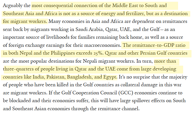 - destabilizing effects of disrupted migrant labor flows from the Gulf.